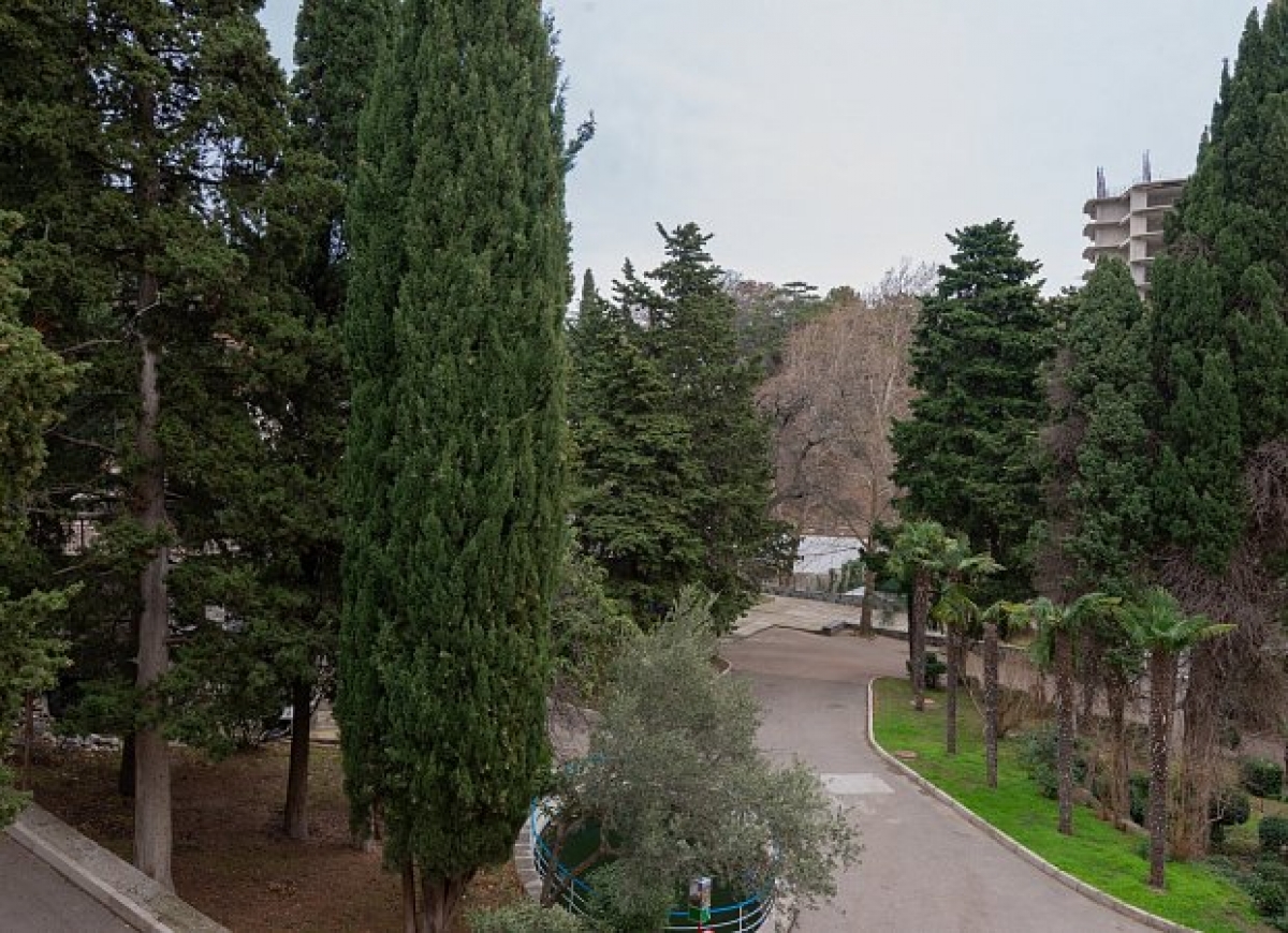 Номер состоит из двух спален и гостиной, в одной спальне двуспальная кровать, прикроватные тумбочки, два настенных бра, во второй спальне односпальная кровать, прикроватная тумбочка, настенное бра, в гостиной раскладной диван, кресла. В номере: туалетный столик, обеденный стол, стулья, зеркало, тумбы, шкаф для одежды, вешалки, набор посуды, чайник, чайный набор, сушилка для белья, телевизор, холодильник, кондиционер, две ванные комнаты (ванна, душ, умывальник, туалет, фен, банные полотенца, косметические средства, халаты и тапочки). Номера с балконом или без, вид на парк. Дополнительное место – раскладной диван. Максимальное размещение – 5 человек.
